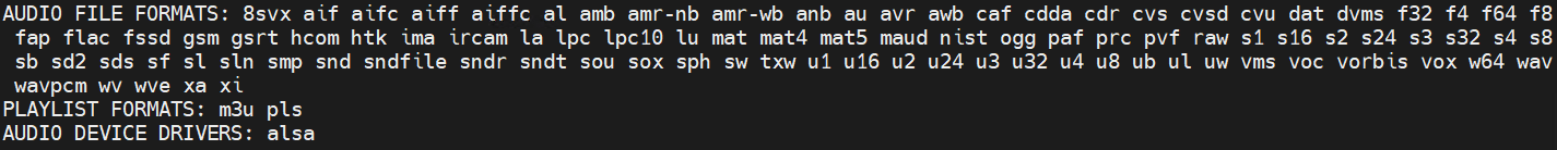 sox는 아래 캡처와 같이 다양한 오디오 파일 포맷을 지원합니다.