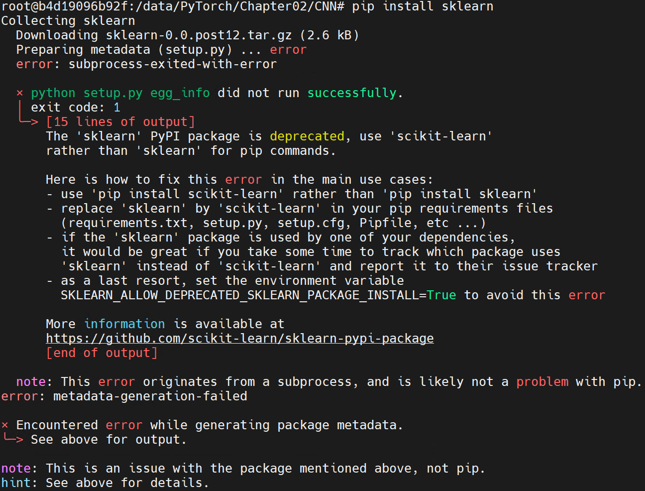 설치할 때는 약자(sklearn)가 아니라, 전체 이름(scikit-learn)을 적어줘야 합니다.
