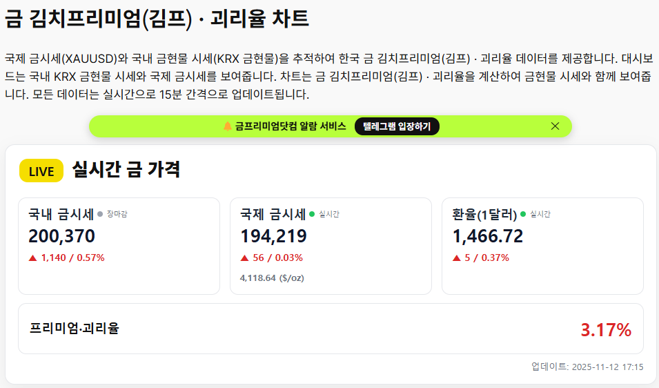 아래 사이트에서 실시간으로 금프를 확인할 수 있습니다.